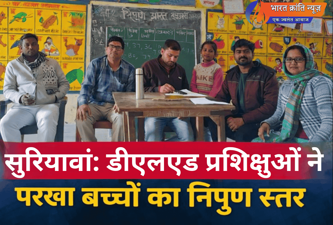 डीएलएड प्रशिक्षुओं ने किया बच्चों का निपुण आकलन, सीखने के स्तर का हुआ मूल्यांकन सुरियावां।परिषदीय प्राथमिक विद्यालय बनकट में सोमवार को डीएलएड प्रशिक्षुओं मनीष निगम एवं आशुतोष कुमार द्वारा कक्षा एक से तीन तक के विद्यार्थियों का निपुण आकलन किया गया। इस आकलन का उद्देश्य बच्चों की बुनियादी साक्षरता एवं