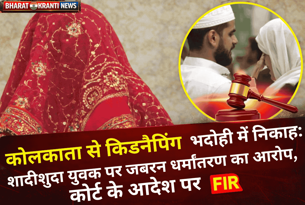 कोलकाता से किडनैपिंग, भदोही में निकाह: पहले से शादीशुदा युवक पर छात्रा के जबरन धर्मांतरण का आरोप, कोर्ट के आदेश पर साजिशी परिवार पर FIR 🚨 भदोही | भारत क्रांति न्यूज़ ब्यूरो कोलकाता की एक छात्रा के कथित अपहरण, जबरन धर्मांतरण और निकाह कराने के गंभीर आरोपों के मामले में