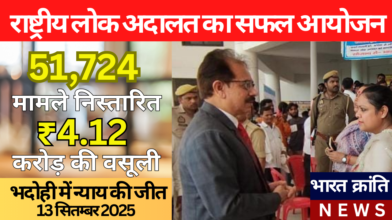 भदोही में राष्ट्रीय लोक अदालत का धमाकेदार आयोजन – 51,724 मामलों का समाधान! ₹4.12 करोड़ की वसूली