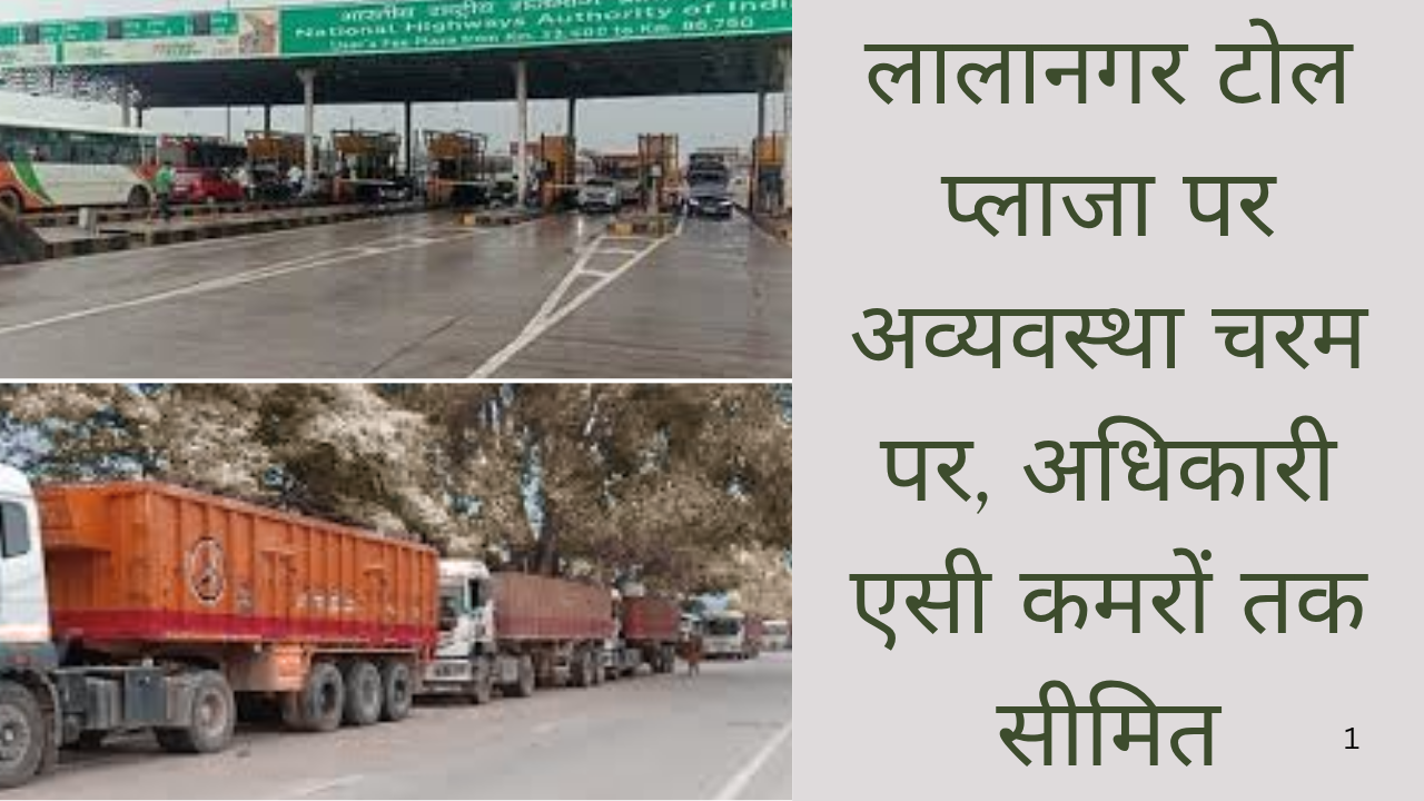 लालानगर (भदोही)। गोपीगंज कोतवाली क्षेत्र के लालानगर टोल प्लाजा के पास इन दिनों भारी अव्यवस्था और लापरवाही देखने को मिल रही है। टोल प्लाजा के उत्तरी और दक्षिणी लेन पर सुबह से लेकर देर रात तक बड़े-बड़े वाहन सड़कों पर खड़े रहते हैं, जिससे आवागमन में दिक्कत के साथ-साथ सड़क हादसे का खतरा भी बढ़ गया है।