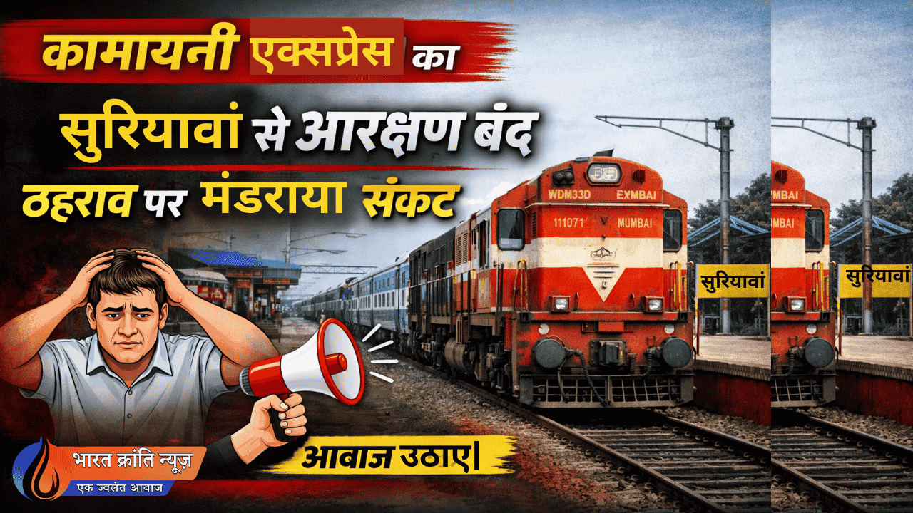 11071 मुंबई से आने वाली कामायनी एक्सप्रेस ट्रेन का सुरियावां रेलवे स्टेशन के लिए आरक्षण बुकिंग पिछले कई दिनों से बंद होने से यात्रियों में भारी नाराजगी और चिंता देखी जा रही है। रोजाना मुंबई और आसपास के महानगरों से आने-जाने वाले यात्रियों के लिए यह ट्रेन क्षेत्र की जीवनरेखा मानी जाती है।