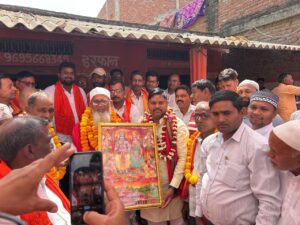 ईद के अवसर पर आयोजित इस कार्यक्रम में हाजी कमरुद्दीन ने जिला पंचायत सदस्य मुनेश्वर गुप्ता को राम दरबार की सुंदर तस्वीर भेंट कर सम्मानित किया। इस पहल को उपस्थित लोगों ने गंगा-जमुनी तहजीब की जीवंत मिसाल बताते हुए सराहा और कहा कि यह कदम समाज में आपसी विश्वास और भाईचारे को मजबूत करने वाला है।